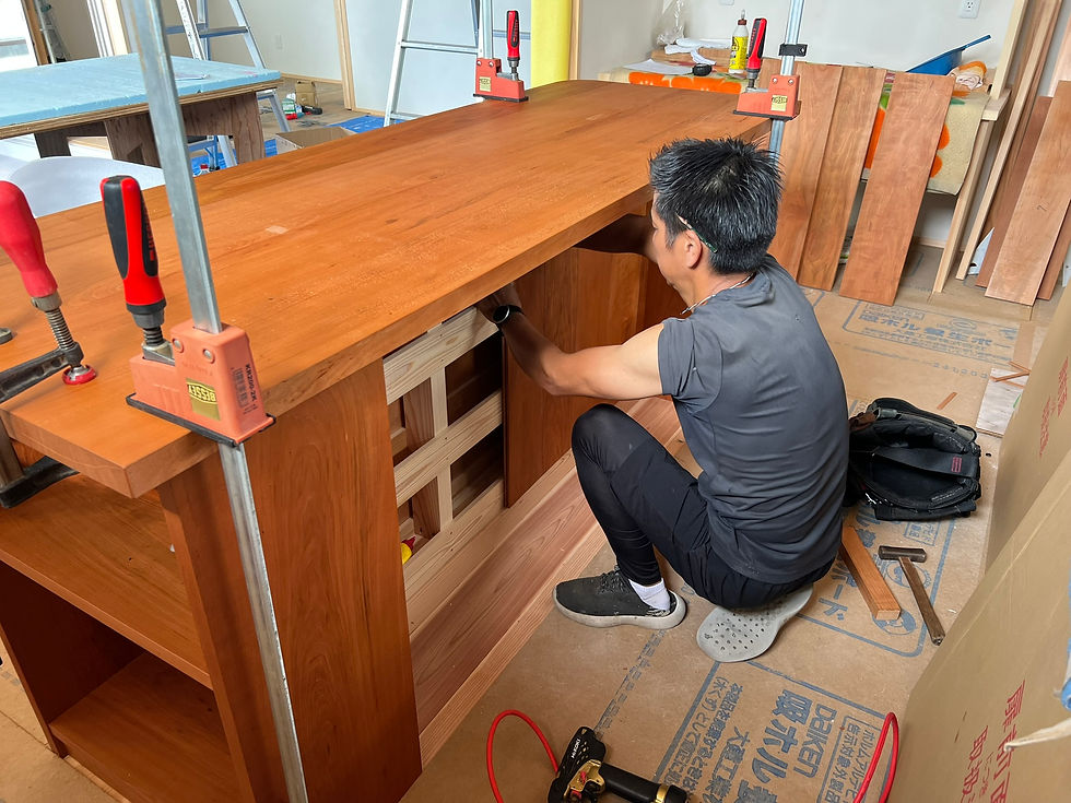 同時に大工さんが桜の無垢材を使ったキッチンの作業カウンターをつくります。