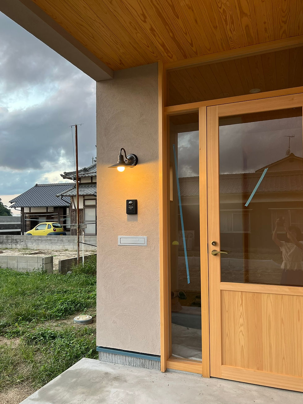 照明、インターホン、郵便受け口もつきました。